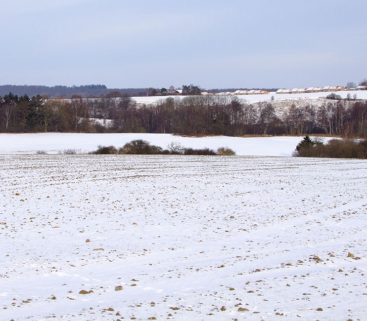 Panorama - Udsigt over det sneklædte morænelandskab vest for Ganløse Scroll horizontalt >>> |